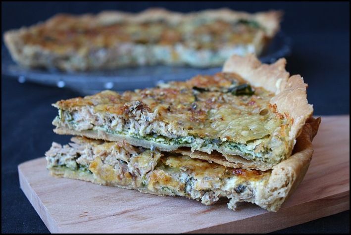 Pastel hojaldre combinado de bacon con verdeo y champiñones