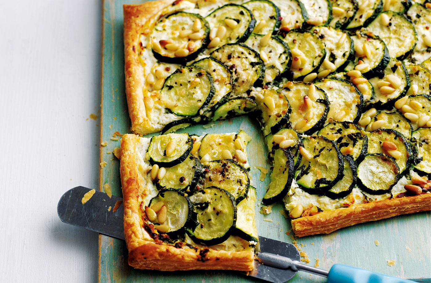 Pastel hojaldre de zucchinis con requesón y mozzarella