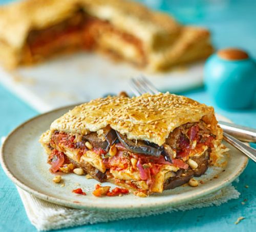 Pastel hojaldre mixto de patatas puerro y rúcula