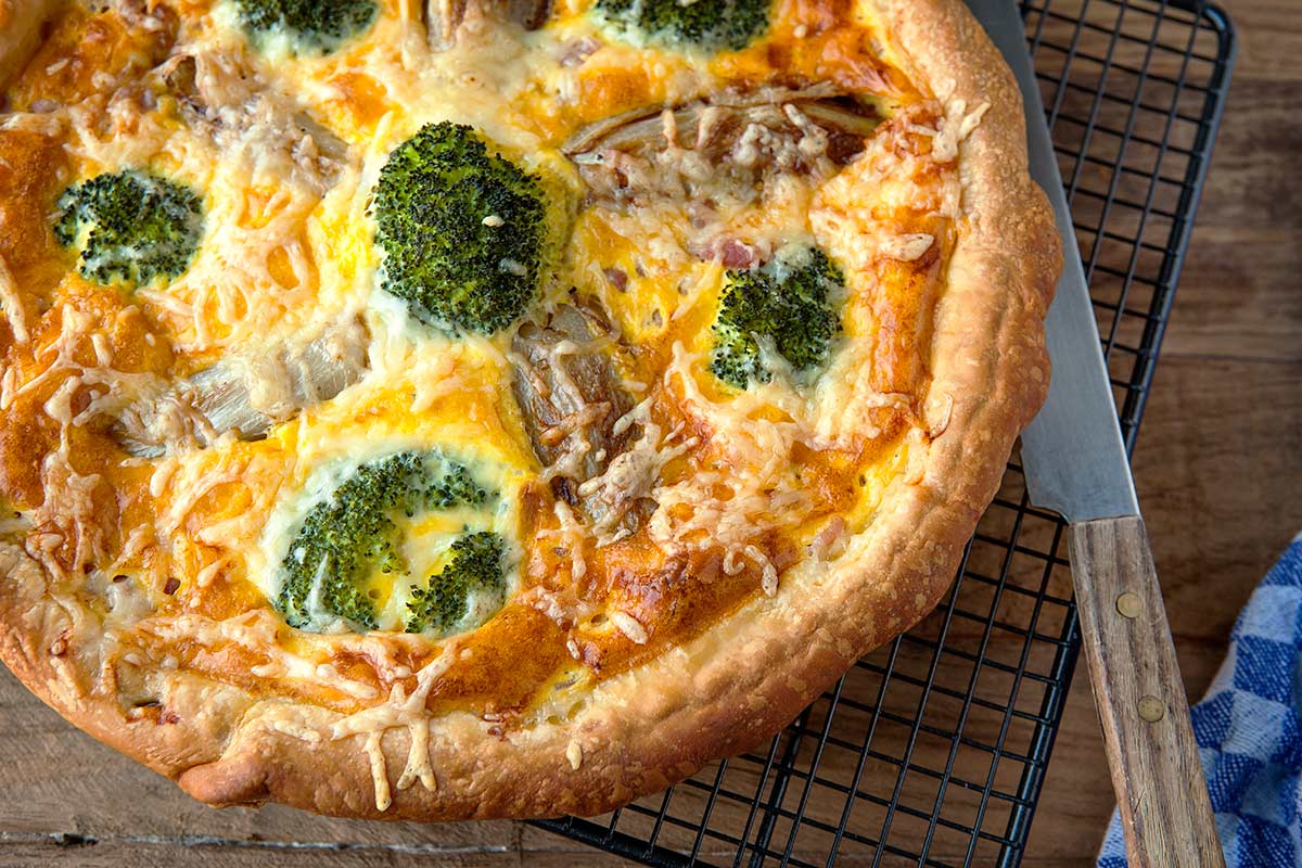 Pastel hojaldre combinado de brócoli con ajíes rojos