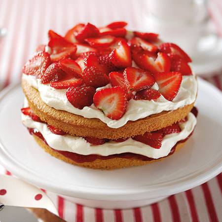 Torta de vainilla y fresas