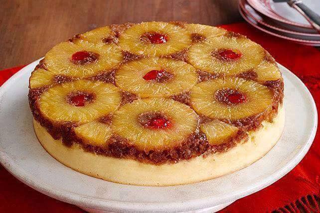 Volteado de piña con cheesecake