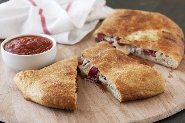 Mezclar la requesón, la mozzarella, el tomate, el salami, el parmesano y también el tomate. Agregar una pizca de sal y pimienta. Colocar toda esa mezcla en la lámina hojaldre para tarta; de un lado humedecer los bordes y formar una gran empanada. Pincelar la cubierta con el huevo batido. Llevar a horno moderado a fuerte, hasta que este masa esté dorada. Dividir en porciones y servir de inmediato.