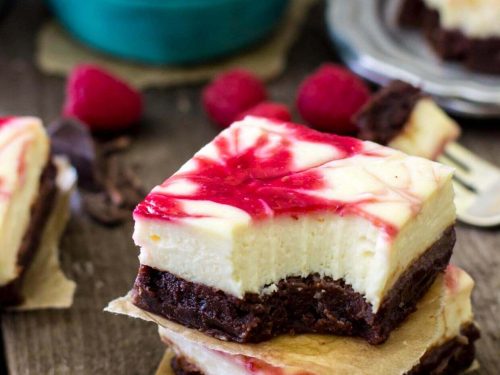 Cheesecake de chocolate blanco con salsa de frambuesas