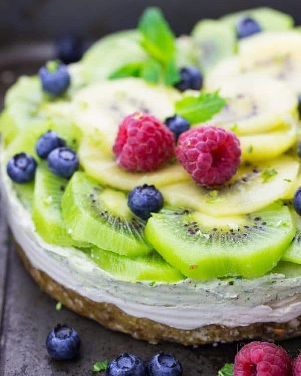 Bate en una batidora eléctrica el queso cottage con el yogurt 5 minutos, agrega el azúcar, harina, los huevos, las claras y bate hasta que esté suave. Vierte el relleno sobre la base con la galleta molida, hornea a banomaria 2 horas o hasta que al insertar un palillo de madera éste salga limpio, retira del horno y deja enfriar por completo, desmolda y sirve. Adorna con el kiwi.