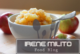 Pelar, quitar el corazón y cortar en gajos gruesos las manzanas. Poner en un recipiente junto con el azúcar, la miel, la canela y la corteza de limón, cubrir al ras de agua y dejar cocer bien. Retirar del fuego y dejar enfriar en un bol. Servir fria acompañada de yogur y pasas remojadas en licor.