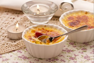 Moler el anís estrellado. Reservar. En una olla, combinar la leche, crema, castañas de Caja, anos y 55 gr de azúcar. Dejar que hierva bien despacio a fuego bajo. Una vez que empezó a burbujear, apagar el fuego, tapar y dejar reposar por 10 minutos. Por un colador bien finito o filtro, y colocar en un bol. Mezclar las yemas con el resto del azúcar, y batir hasta que se espese y se ponga bien pálido. Incorporar la crema a las yemas gradualmente, batiendo constantemente y vigorosamente. Dividir la mezcla en 6 rameskins. Colocar los rameskins en una placa alta para horno, y llenar con agua caliente hasta cubrir la mitad de los costados de los rameskins. Llevar a horno bajo (150°C) por 30 minutos, o hasta que se haya formado una capa en la parte superior. Dejar enfriar a temperatura ambiente, y luego llevar a la heladera pro 6 horas o durante toda la noche. Antes de servir, espolvorear con azúcar cada crema bruleè, y caramelizar a la parrilla en el horno. Repetir 2 veces más el proceso, con 2 capas más de azúcar, caramelizando cada vez.