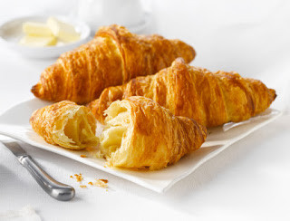 En un bol grande, disolver la levadura en el agua tibia. Dejar que se forme una crema bien llena de burbujas, más o menos por 10 minutos. Anadir la leche, sal, azúcar, 1 huevo, 125 gr de harina y la mantequilla derretida. Mezclar bien hasta que se forme una mezcla suave y lisa. Reservar. Mientras tanto, en otro bol grande, mezclar el resto de la harina con la mantequilla en cubos, hasta que se formen grumos del tamaño de arvejas. Verter la mezcla de la levadura sobre la masa, y con la ayuda de una espátula, darla vuelta, hasta que toda la harina quede bien humedecida. Tapar con papel film, y guardar en la heladera por lo menos durante 4 horas. También se puede dejar hasta 4 días. Amasar sobre la mesada enharinada, presionando en las burbujas con los puntos para descalificar la masa. Dividir la masa en 4 partes iguales. Amasar 1 parte a la vez, el resto guardar en la heladera. Estirar una parte de la masa con palote en forma de círculo de 45 cm de diámetro. Cortar con un cuchillo bien filoso, o rueda de pizza, en 8 triángulos. Enrollar cada triángulo desde su base, y darle forma de medialuna. Colocarlas en una placa para horno, separadas entre sì por 4 cm. Tapar y dejar levar a temperatura ambiente hasta que dupliquen su tamaño. aproximadamente por 2 minutos. Mientras tanto, precalentar el horno a 180°C (moderado). Pintar las medialunas con el huevo batido y llevar al horno por 30 minutos, o hasta que estén doradas.