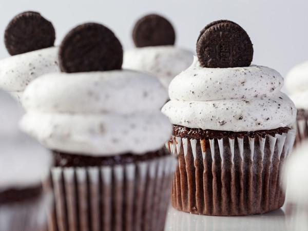 Precalentar el horno a 180°C. Procesar las galletitas de la base y la crema granizada. Derretir la manteca y dejar entibiar. Tamizar la harina junto con la sal. Batir la manteca con el azúcar y agregar los huevos, batiendo bien luego de cada incorporación. Saborizar con la esencia de vainilla. Agregarle los ingredientes secos, alternando con la leche, hasta finalizar por los secos. Por último, incorporar 3/4 partes del total las galletitas de chocolate procesadas y batir un poco para que se distribuyan de manera uniforme en la preparación. Colocar la masa en los pirotines, llegando hasta 2/3 de los mismos. Hornear a 180°C, aproximadamente de 20 a 25 minutos o al introducir el palillo, éste salga seco. Retirar y dejar enfriar. Para la crema granizada, batir la crema y el azúcar a punto chantilly. Agregarle con una cuchara el 1/4 restante de las galletitas procesadas. Decorar los cupcakes con la crema granizada utilizando una cuchara. Esparcir por encima trozos de galletitas rellenas.
