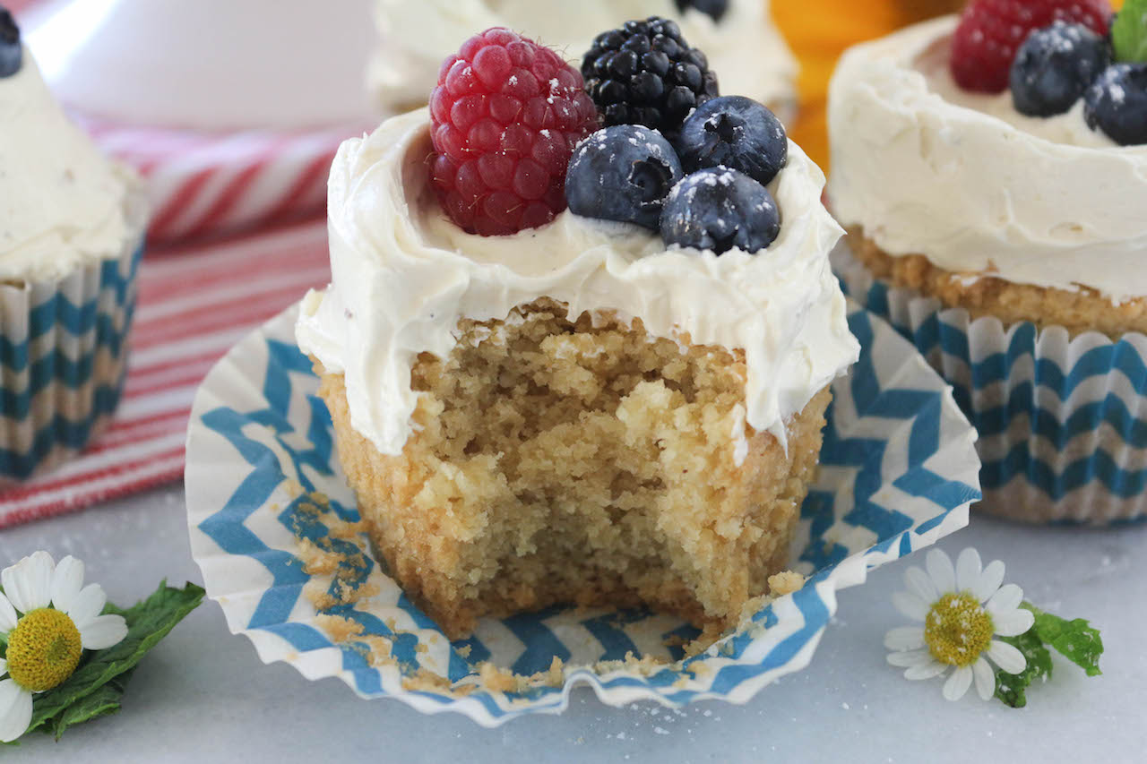 Cupcakes de vainilla con frutos del bosque