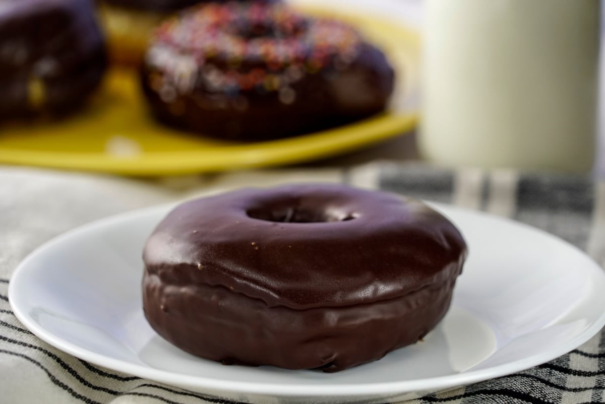 Precalienta el horno a 175 °C. En un cuenco, mezcla la mantequilla, el huevo, la esencia de vainilla y la leche. En un cuenco mezcla la harina con el azúcar, el polvo para hornear y la sal. Agrega los ingredientes húmedos a los secos y mezcla hasta integrar sin batir demasiado. Vierte la mezcla sobre un molde de silicon y hornea por 10 minutos. Deja enfriar, desmolda y reserva. Coloca las donas sobre una rejilla y cubre las donas con chocolate amargo, decora con chispas de colores, chocolate de colores y chocolate blanco. Deja secar. Disfruta con un vaso de leche fría. Sobre una base de pastel, acompañadas de un vaso de leche. Es importante no batir en exceso las donas, de otra forma crearás exceso de aire y se desbordarán del molde. Los moldes de silicon aportan brillo al pan.