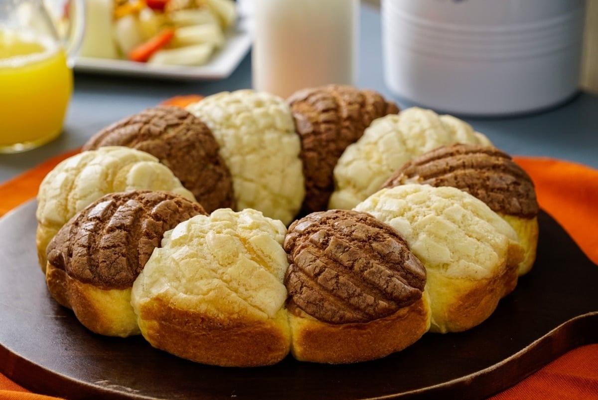 Coloca la masa en un cuenco previamente engrasado, tapa y deja fermentar 1 hora o hasta que duplique su volumen. Para la costra, en una batidora a velocidad alta, bate la mantequilla con el azúcar glass y la harina hasta tener una masa firme. Divide en 2 partes y a una agrega la cocoa y bate hasta integrar. Entre dos rectángulos de plástico antiadherente, extiende los dos sabores de costra a 3mm de grosor. Corta con un cortado para galletas de 5 cm de diámetro y con un cortador de concha o un cuchillo, marca y reserva. Precalienta el horno a 180°C. Sobre una superficie enharinada, forma bolitas de masa de 50 g aproximadamente. Coloca encima la costra de vainilla y de chocolate. Coloca las conchas en un molde circular de 20 cm de diámetro, previamente engrasado y enharinado, formando una rosca, cuidando de alternar los colores. Fermenta por 15 minutos más o hasta que doblen su volumen. Hornea la rosca 20 minutos o hasta que esté cocida. Retira el horno, enfría y sirve. Sobre una tabla de madera acompañada de un vaso de leche tibia o café. La masa de conchas es muy suave, por ello no es necesario agregar demasiada harina para no resecar el pan y conservar la humedad. Recuerda no sobre calentar demasiado la costra de la concha, de lo contrario quedará muy suave y no podrás estirarla.