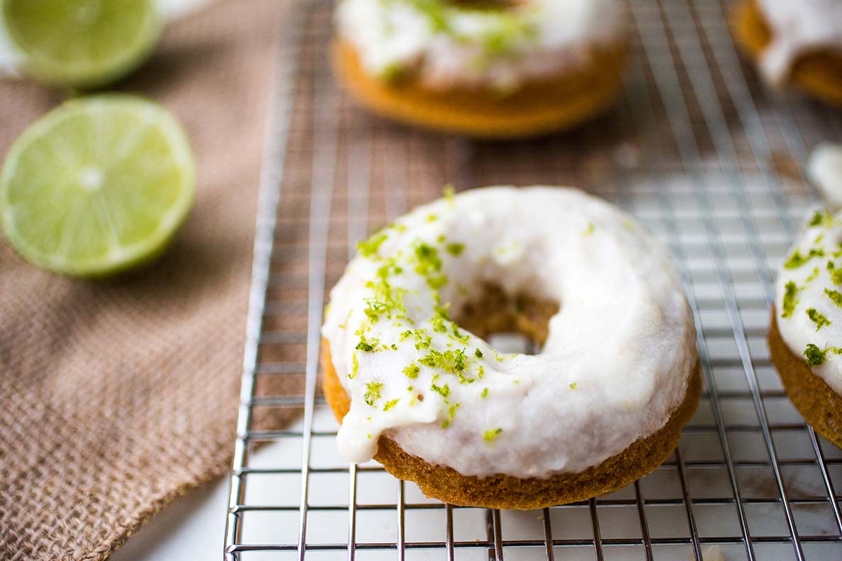 Precalienta el horno a 180º C. Utiliza un molde para hornear donas, engrasa con mantequilla y harina. En un tazón mezcla las galletas molidas, la mantequilla derretida y el azúcar, reserva. En otro tazón, la leche y la crema, reserva. En el siguiente tazón, la harina cernida, el polvo para hornear y la sal, reserva. En el último tazón coloca la mantequilla y el azúcar, bate con una batidora hasta a cremar, agrega el huevo, el jugo de limón y la ralladura sin dejar de batir. Poco a poco agrega la mezcla de la crema con la leche y la harina alternando las dos mezclas hasta incorporarlas. Vierte la mezcla hasta 3/4 partes del molde de donas, espolvorea la mezcla de galletas, y presiona ligeramente. Hornea 30 minutos o hasta que al insertar un palillo éste salga limpio, saca del horno y deja enfriar. Desmolda, espolvorea con el azúcar glas cernida y decora con la brillantina.