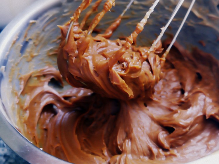 Poner todos los ingredientes en una olla a fuego mediano hasta que hierva, revolviendo constantemente con cuchara de madera. Una vez que soltó el hervor, agregar el bicarbonato, bajar el fuego, y continuar la cocción, revolviendo de vez en cuando. Sacar un poquito y ponerlo en un plato, y dejarlo correr, el punto exacto es cuando no se desliza cuando se enfría un poco. En ese momento, agregar las barritas de chocolate rallado. Retirar del fuego, y colocar la olla sobre otra con agua bien fría, y continuar revolviendo hasta que se enfríe. Conservar en un recipiente con tapa en la nevera.
