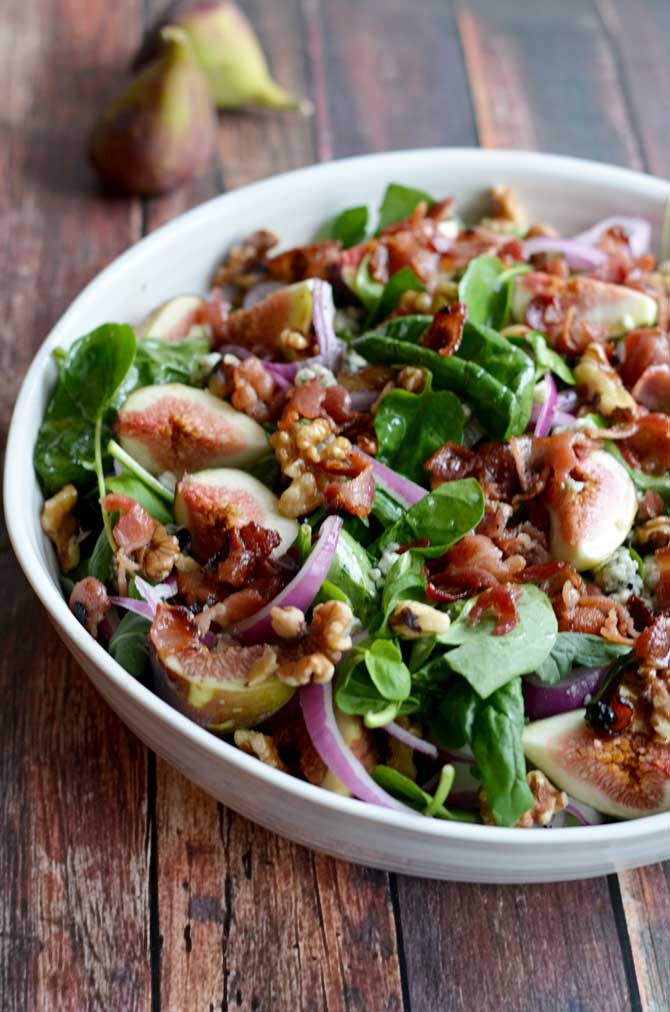 Freír el bacon con muy poco aceite a fuego lento. Ir moviendo cada tanto para que no se pegue y queme. Lavar la lechuga, escurrirla bien, cortarla pequeña y ponerla en un bol. Abrir las nueces, pelarlas y echarlas también. Lavar la pera, pelarla, cortar a tiras y anadirla. Pelar el kiwi y a trocitos pequeños anadirlo tambien. Levar el tomate, quitarle el corazón y anadirlo cortado a trozos pequeños. Anadir el bacon, alinar con un poco de aceite y sal y a disfrutar.