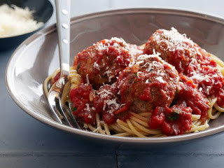 Precalentar el horno a 180°C (horno moderado). Cubrir la base de una asadera con papel aluminio. Aceitar ligeramente el papel aluminio. Para las albóndigas: En un bol, combinar el trigo burgol con el agua. Dejar remojar hasta que el trigo esté tierno y haya absorbido el liquido, unos 30 minutos. En un bol grande, combinar el trigo burgol remojado, las claras, la carne picada, el relleno de los chorizos italianos sin piel, el ajo, el pan rallado, orègano, sal y pimienta. Mezclar bien todo y formar albóndigas con las manos. Colocar las albóndigas sobre la fuente preparada. Llevar al horno y cocinar 25 minutos. Retirar y colocar las albóndigas sobre papel de cocina para absorber el excedente de grasa. Para la salsa y los espaguetis: Colocar una cacerola grande con agua ligeramente salada a hervir. En otra cacerola, calentar las 4 tazas de salsa marinara. Agregar las albóndigas a la salsa y calentar 20 minutos con la cacerola tapada. Incorporar la albahaca. Cocinar los espaguetis hasta que estén al dente, 8 a 10 minutos. Colocarlos y colocar en una fuente para servir. Cubrir con la salsa y albóndigas y servir espolvoreando con queso rallado.