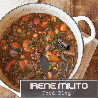 Precalentar el horno a 160°C (horno bajo). En una cacerola de fondo pesado, calentar el aceite de oliva. Condimentar la carne con sal y pimienta, y dorar en la cacerola. Retirar con espumadera y reservar. Agregar la cebolla, la zanahoria, la patata y el apio. Cocinar unos minutos y agregar el ajo, el perejil, el enebro, el laurel, y la pimienta de Jamaica. Cocinar 2 minutos màs. Incorporar el conac y revolver con cuchara de madera raspando el fondo de la cacerola para levantar el fondo de cocción. Agregar los tomates perita, los arándanos, el caldo y ka carne dorada. Condimentar con sal y pimienta, y dejar hervir tapado. Colocar la cacerola tapada en el horno y dejar cocinar entre 2 horas y 2 1/2 horas. Servir sobre polenta.