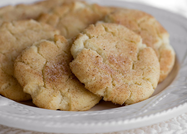 En la batidora se la mantequilla a crema y se agrega el azúcar. Se agrega el huevo y la vainilla y se bate. Se cierne la harina con el bicarbonato, la canela y la sal y se agrega a lo anterior. En un platón se combina el azúcar y la canela y se aparta. Se forman bolitas con la masa y se revuelcan en la mezcla de azúcar y canela. Se acomodan en una hoja de hornear sin engrasar dejando suficiente espacio entre una o otra y se aplastan con un tenedor. Se meten al horno 350°F (175°C) de 8 a 10 minutos. Al sacarlas se revuelcan otra vez en azúcar y canela. Salen alrededor de 6 docenas.