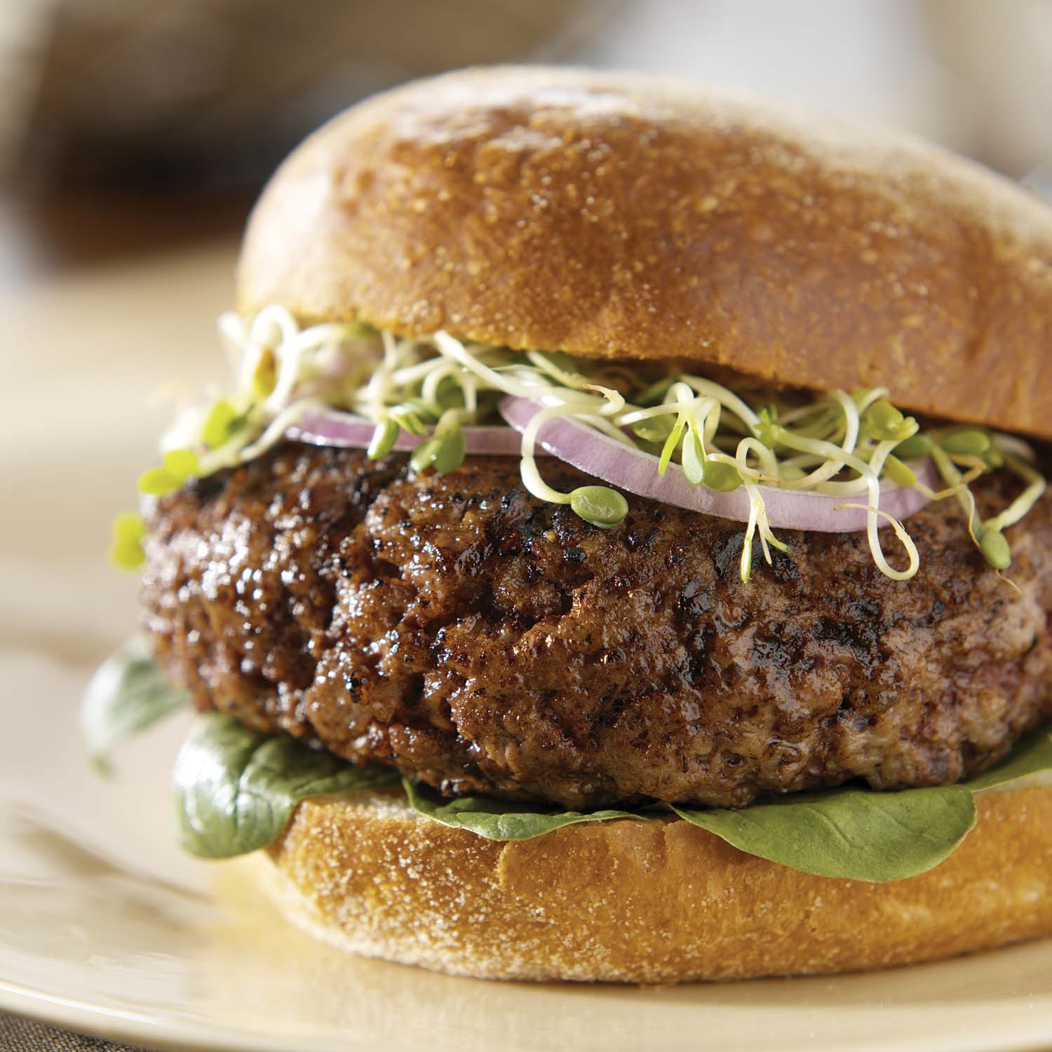 Poner a remojar la soja texturizada 25 minutos. Picar y saltear las cebollas y pimientos. Agregar la zanahoria rallada o tomate rallado (opcional). Escurrir la soja y mezclar con la verdura. Añadir 3 cucharadas de harina, mezclar y formar las hamburguesas. Cocinar en el horno por 15 minutos y servir caliente.