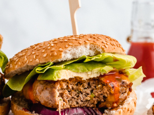 Procesar en licuadora o procesadora las supremas con la clara de huevo, la cebolla rallada. Retirar e incorporar el queso rallado, el perejil picado, el salvado y salpimentar al gusto. Mezclar hasta obtener una masa homogénea. Armar 10 bolitas con la masa y aplastar para darles la forma a las hamburguesas. Pasarlas por huevo batido y luego pan rallado (este proceso se llama empanizado). En un sartén bien caliente agregar un poco de aceite y cocinar las hamburguesas 2 a 3 minutos por lado, hasta que dore y la carne esté bien cocida. El tiempo de cocción varía de acuerdo al grosor de las hamburguesas. Servir de inmediato al plato con alguna guarnición como ensalada mixta o en sándwich con un tipo de pan y aderezos a elección.