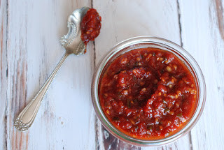 Escaldar los tomates en agua hirviendo (así se pelan mejor). Quitarles la piel, abrirlos y retirar las semillas (reservando, las semillas y los jugos en un bol). Poner los tomates troceados en un cazo al fuego. Con un colador de rejilla, colar las semillas y los jugos sobre el cazo de los tomates. Si no se quieren encontrar trozos de tomate en la mermelada, triturar el tomate, antes de poner el azúcar. A continuación, anadir el jengibre, la pimienta, el clavo de olor y la canela. Incorporar el azúcar poco a poco, mezclando bien todos los ingredientes. La temperatura del fuego debe ser suave y se debe de remover de vez en cuando con cuchara de madera, para que no se pegue. La mermelada estará al punto pasada una hora y cuarto más o menos. Retirar la canela. Rellenar los botes y esterilizarlos al bano maria.