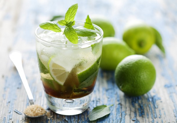 Colocar en el vado que se utiliza para a servir: el mojito, el azúcar y la menta. Machacar ligeramente para extraer la esencia de la menta, no destrozar las hojas. Anadir a continuación el zumo de lima, las hojas de menta y sobre ellas el hielo picado para que no se vayan a la superficie. Finalmente incorporar el ron y el agua con gas al gusto. Una rodajita de lima, unas hojas de menta para decorar y una canita para disfrutar del mojito.