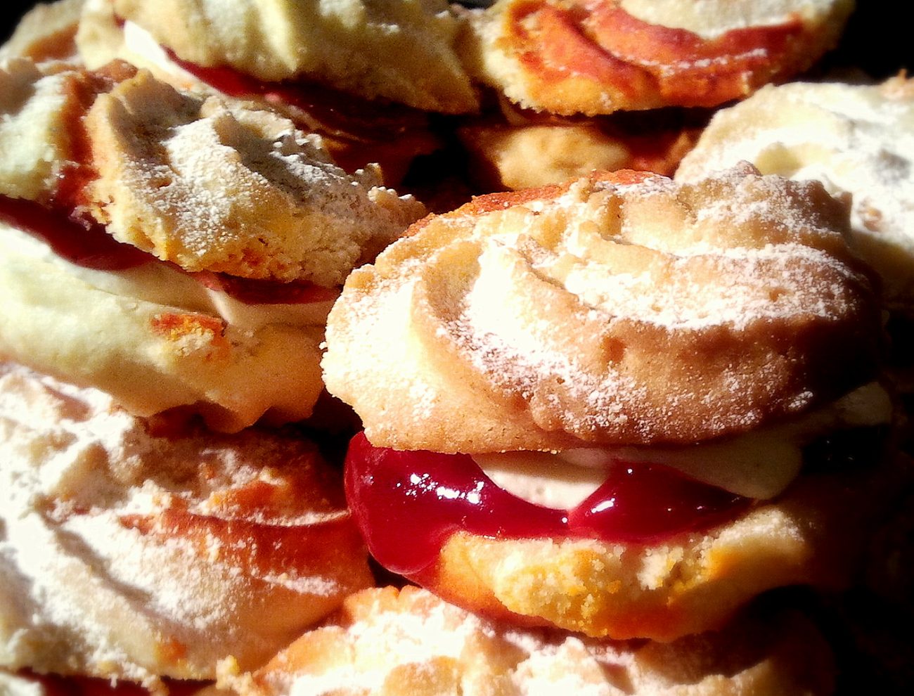 Estas pastas son tan tiernas que se deshacen en la boca. Su suave crema de mantequilla y el relleno de mermelada las convierte en todo un delirio.