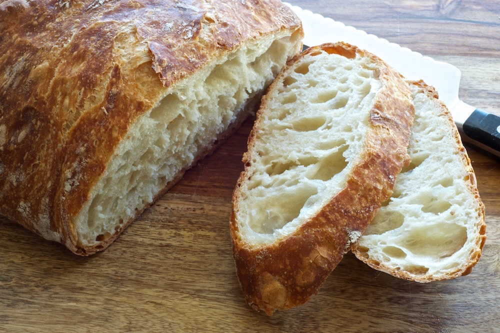 Mezclar el azúcar con la levadura y el agua caliente y dejar que fermente. Agregar 4 tazas de harina de a poco y batir hasta que esté bien suave y homogénea. Cubrir con un repasador mojado y dejar que leve por 15 minutos. Amasar bien hasta que quede bien suave y esponjosa. Poner la masa en un bol previamente aceitado, tapar y dejar levar nuevamente hasta que duplique su tamaño. Si se coloca en el horno solamente con la luz prendida le da el calor suficiente para que leve perfectamente. Una vez que duplica su tamaño, amasar bien sacando todo el gas y dividir en 3. Volver a poner en el bol aceitado, tapar y dejar levar nuevamente. Una vez que volvió a duplicar su tamaño, volver a amasar para descalificar y darle forma de 3 pelotas. Aceitar bien 2 placas para horno y espolvorear con harina de maíz. Colocar los panes en las placas, taparlos y dejar que leven otra vez. Una vez que levaron, rociarlos con agua y llevarlos al horno precalentado a 230°C (fuerte). Continuar rociando los panes con agua y darlos vuelta ocasionalmente par que se cocinen bien. El pan estar listo cuando esté dorado por fuera y suene hueco al golpearlo en la base.