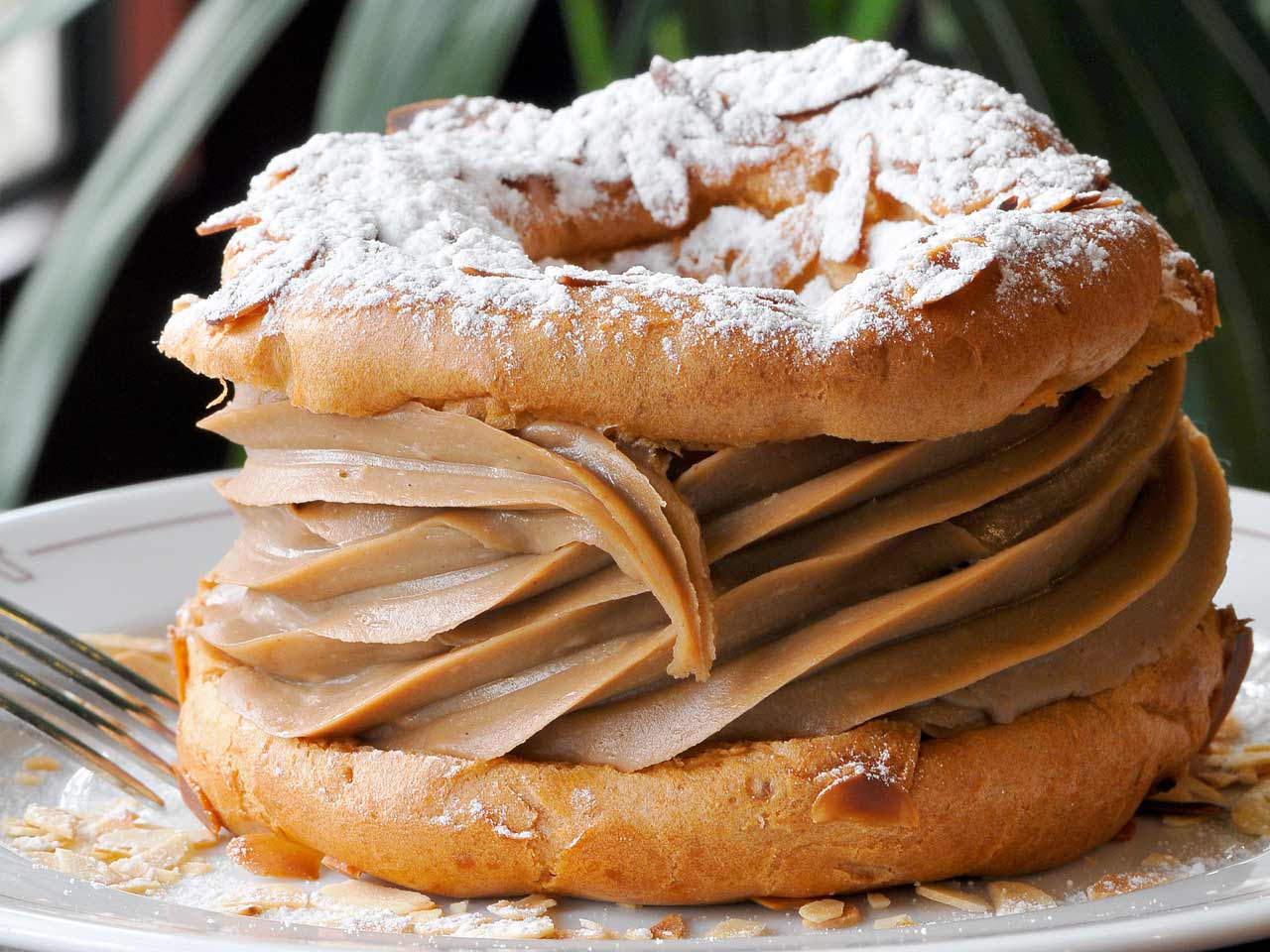 En una olla, calienta el agua junto con la mantequilla hasta que hierva, agrega de golpe la harina. Mezcla con fuerza y con una pala de madera hasta que la masa se despegue de la olla. Pasa la masa a la batidora con la pala, bate unos minutos hasta que la masa se enfríe un poco. Agrega los huevos uno a uno para que se integren por completo. Coloca la masa en una manga con duya lisa grande. En una charola con papel encerado, coloca bolitas de la masa pegadas en forma de círculo. Hornea 40 minutos a 200°C o hasta que estén ligeramente doradas. Saca y deja enfriar por completo. Corta a la mitad en forma horizontal.