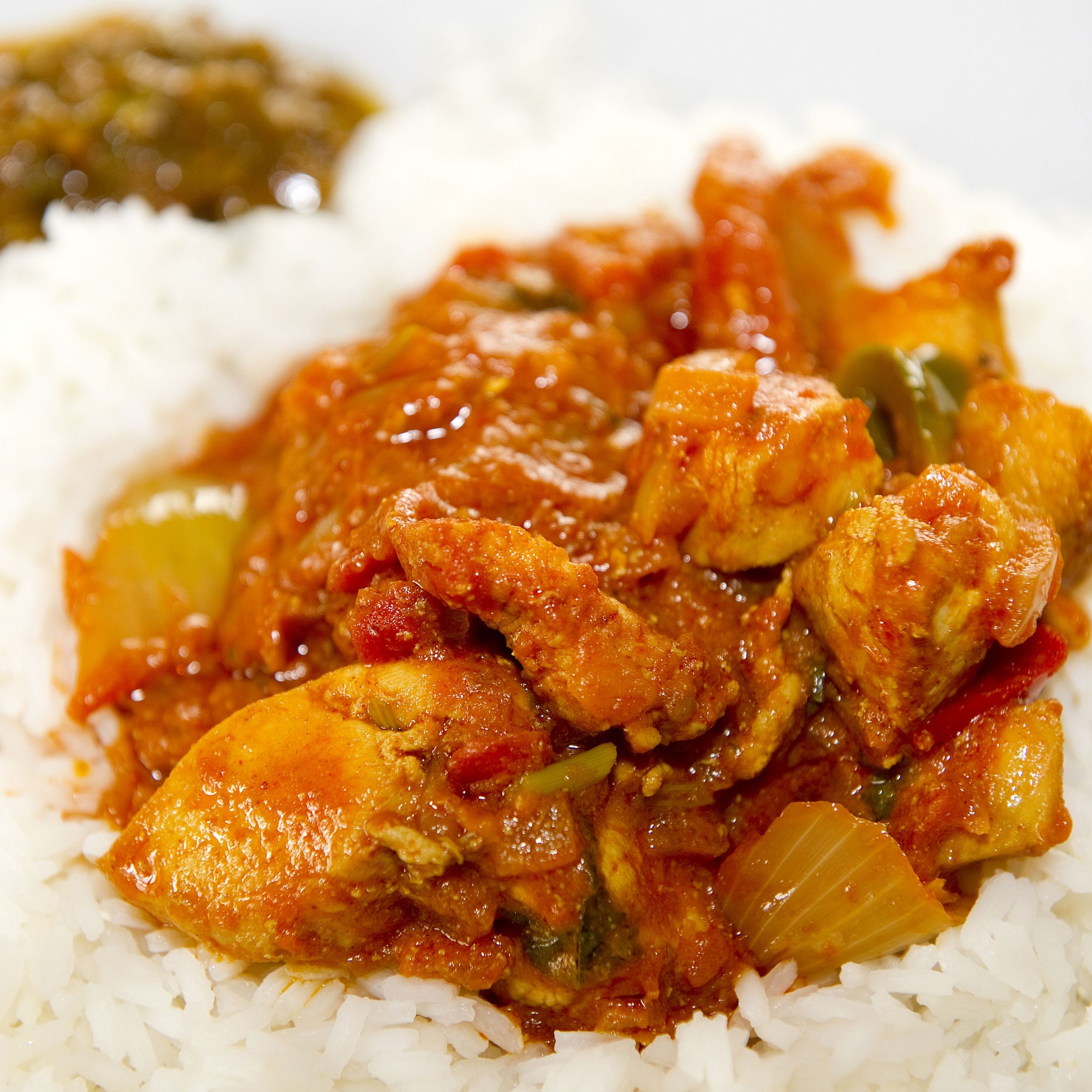 Pelar y cortar más o menos de las cebollas y ponerlas en una cacerola con 250 cc de agua. Llevar a ebullición, reducir el fuego a bajo de cocinar, tapado, durante 10 minutos. Procesar en una procesadora y reservar a un lado. Mientras tanto, picar finamente las cebollas restantes. Quitar la piel y la grasa de las pechugas e pato, a continuación, cortar la carne en cubos de 2,5 cm. Calentar el aceite en una cacerola a fuego medio alto y freír el pato durante 4 minutos, o hasta que tome color. Retirar con una espumadera y reservar. Retirar la cacerola del fuego para que el aceite se enfríe un poco. Anadir las hojas de laurel, las semillas de cardamomo, canela y clavo de olor y dejar que se cocinen suavemente durante 15-20 segundos. Poner la cacerola nuevamente en el fuego, anadir la cebolla picada y freír, revolviendo frecuentemente, durante 8 minutos, hasta que se dore. Agregar la pimienta de cayena, cilantro, comino, el ajo, el jengibre, la cúrcuma y el pimentón y cocinar durante 1 minuto. Luego agregar las cebollas procesadas, aumentar un poco el calor y cocinar por 5 minutos, revolviendo con frecuencia. Anadir los tomates, con su jugo, y continuar la cocción a fuego lento durante otros 5 minutos. A continuación, incorporar el pato dorado a la cacerola y anadir 175 cc de agua. Tapar, llevar a ebullición luego reducir el calor y cocinar a fuego lento durante 30 minutos. Destapar de vez en cuando y comprobar si necesita más agua. Anadir sal al gusto, tapar y continuar la cocción durante otros 20-25 minutos, revolviendo ocasionalmente, hasta que el pato esté tierno y hay absorbido el sabor de la salsa. A continuación, aumentar un poco el calor y cocinar, sin tapar, durante 3 minutos, revolviendo con frecuencia, para espesar la salsa. Agregar el garam masala y el cilantro picado, cocinar a fuego lento durante 1 minuto y luego servir con guarnición de cilantro y rodajas de pepino y la cebolla.