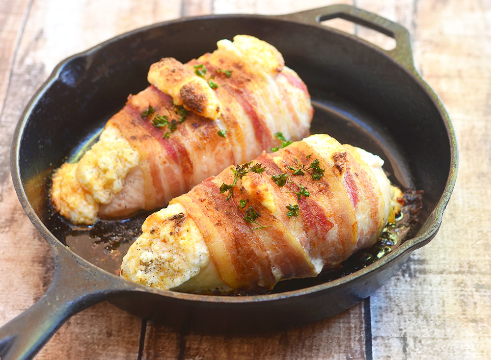 - 4 lonchas de bacon ahumado, dorada y seca en toallas de papel