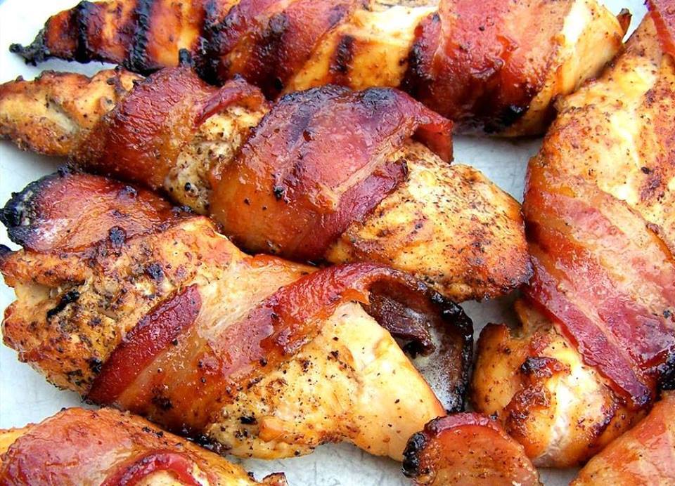 - 6 tiras de tocino ahumado (calcula 2 tiras grandes por cada pechuga de pollo)