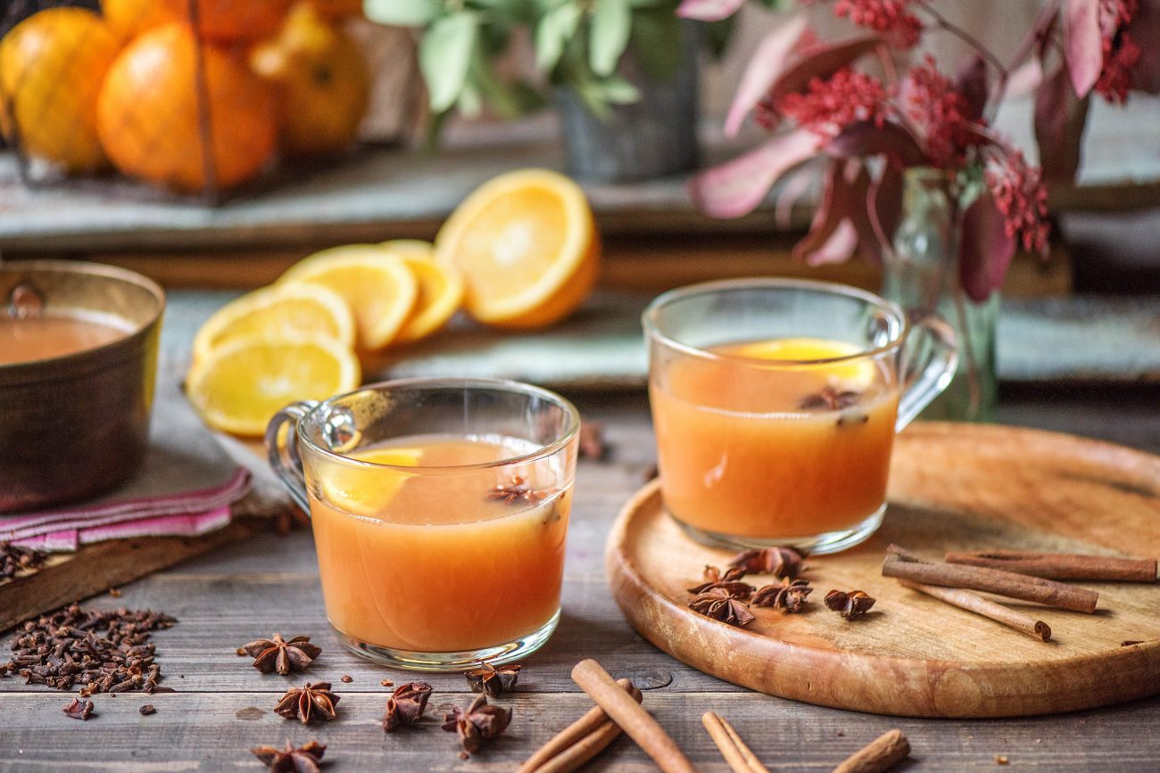 Calentar en una cacerola todos los ingredientes, cuando suelte el hervor bajar el fuego y dejar por 10 minutos. Refrigerar y calentar a la hora de servir. Adornar cada taza con las rajas de canela restantes,