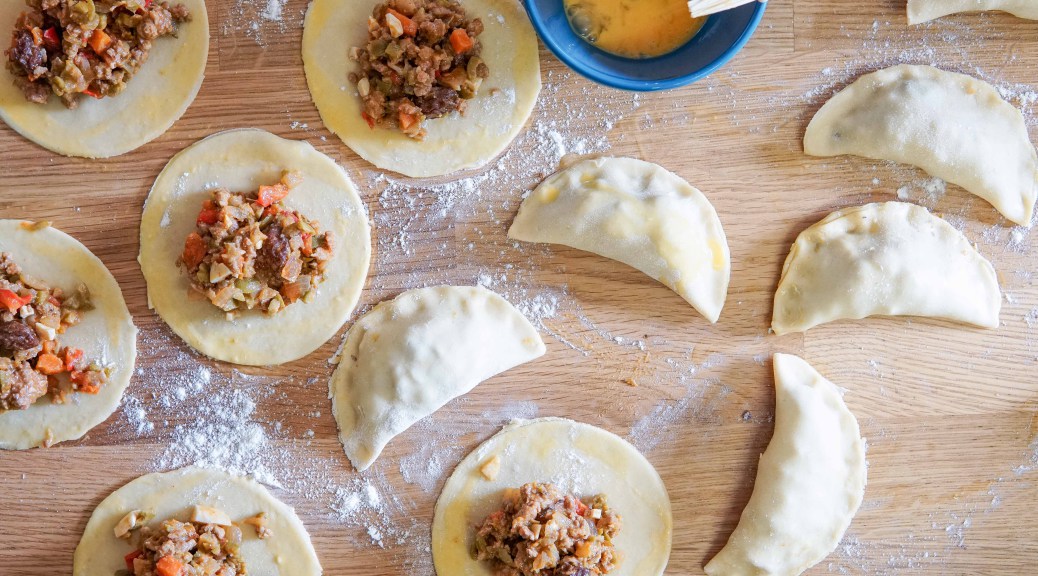 Este fin de semana en Ourense en el cumpleaños de mi madre el primer plato fue empanada de carne, tan buena estaba que casi no comí pulpo. Esto es algo general en cualquier comida de fiesta, sea de cumpleaños, familiar, amigos. Y es que la empanada es uno de los platos estrella en la cocina gallega. Y dicen que por aquel entonces, allá por el siglo XII, los antiguos peregrinos sabían que estaban ya llegando a Santiago de Compostela cuando, desfallecidos y hambrientos, desde los montes cercanos sentían ya el agradable olor de las empanadas de pan y de vieiras convirtiéndose así la empanada en una nueva y sabrosa Guía del Camino y apetitoso aliciente para volver a peregrinar”. Y tanta fama llego a tener que hasta el Mestre Mateo la plasmo en el Pórtico de la Gloria, en la famosa Catedral de Santiago de Compostela. La empanada tiene un origen bien antiguo y ya los romanos preparaban algo parecido a la empanada. En Galicia tenemos una panadería en cada pueblo o aldea y lo normal es llevar a esa panadería el compango (relleno de la empanada) en la cazuela y el panadero, que ya tiene la masa hecha, elabora esa empanada con su arte que lo diferencia de los demás. El problema surge cuando llego a Madrid hace unos años y esto aquí no pasa, la gente la compra hecha y normalmente no es de masa de pan. Pues me dije ¿por qué no la hago yo? Y empecé a hacer todo el proceso, la masa y el compango. No es la misma de Galicia pero lo que le han probado repiten. La he hecho tantas veces y de tantas formas que al final me he quedado con esta receta, que creo es la mejor, la cual os presento. Eso sí estoy abierto al debate.