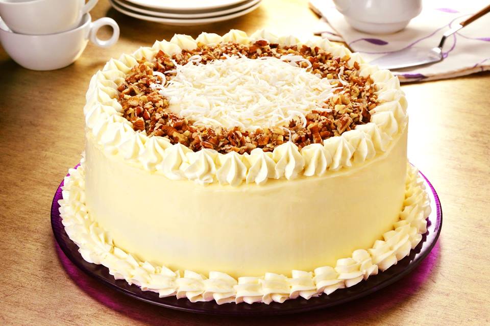 Precalienta el horno a 180°C. Para el pastel: En una batidora agrega el aceite, el azúcar y los huevos, bate 3 minutos. Con ayuda de un colador, agrega la harina, el polvo para hornear, el bicarbonato, la sal y la canela, bate por 5 minutos. Agrega poco a poco las zanahorias, el coco, las nueces, la esencia de vainilla y la piña bate por 3 minutos. Vierte la mezcla anterior sobre 3 moldes previamente enharinados y engrasados, hornea por 25 minutos. Deja enfriar y reserva. Para el betún: bate por 5 minutos la mantequilla con el queso crema, azúcar glass y la esencia de vainilla, coloca sobre una manga de repostería con duya lisa. Coloca el betún sobre una base de pastel sin llegar a las orillas, coloca encima otra base de pastel, repite el proceso hasta tener los tres pisos. Cubre el pastel con el resto del betún, con ayuda de una manga con duya rizada decora el pastel, espolvorea con nueces y coco.
