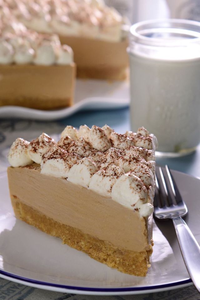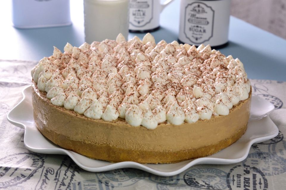 En un procesador agrega las galletas de canela y procesa por 3 minutos. Mezcla las galletas con la mantequilla derretida. Sobre un molde de pastel coloca la base de galletas y presiona bien para compactar. Mezcla la leche con el café soluble. Reserva. Bate el queso crema, agrega la crema para batir y bate hasta que doble su volumen, agrega el azúcar glass, la esencia de vainilla y agrega poco a poco el café con leche y la grenetina hidratada. Vierte sobre la base de galletas y refrigera por 2 horas ó bien hasta que cuaje. Bate la crema hasta que doble su volumen, agrega el azúcar glass, la cocoa bate hasta integrar. Con ayuda de una manga con duya lisa agrega la crema para batir, y decora con cocoa en polvo.