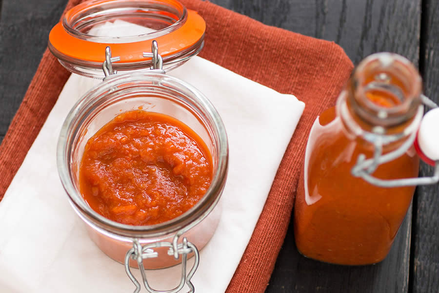 Hierve los chiles, tomates y jitomates. Fríe el ajo y la cebolla. Muele con el resto de los ingredientes agregando el consomé de pollo para sazonar. Sofríe hasta que dé el hervor y sirve.