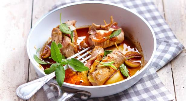 El recetario de la capita italiana proporciona carta de naturaleza a un buen número de platos, algunos tan populares como los saltimbocca, pequeños bocados de carnes (que saltan a la boca) con salvia y jamón que podemos preparar formando pequeños pollitos, o abiertos, sujetándolos siempre con un palillo.