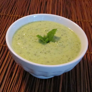 Calentar 2 cucharadas de aceite de oliva en una sartén a fuego mediano. Rehogar la cebolla picada hasta que se ponga transparente. Agregar los tomates y cocinar por 2 minutos, revolviendo constantemente. Anadir 1 litro de agua y dejar que hierva. Incorporar las hojas de menta y los zucchinis. Tapar, bajar el fuego y dejar que se cocinen por 15 minutos. Retirar las hojas de menta. Disolver la fécula de maíz en una vasito de agua fría, e incorporar a la sopa. Volver al fuego mediano, y revolver constantemente con un batidor de alambre hasta que se espese la sopa. Salpimentar a gusto y dejar que se enfríe. Una vez fría, llevar a la heladera por 2 horas. Antes de servir, agregar un chorrito de jugo de limón y decorar con aceite de oliva, hojas de menta y albahaca.