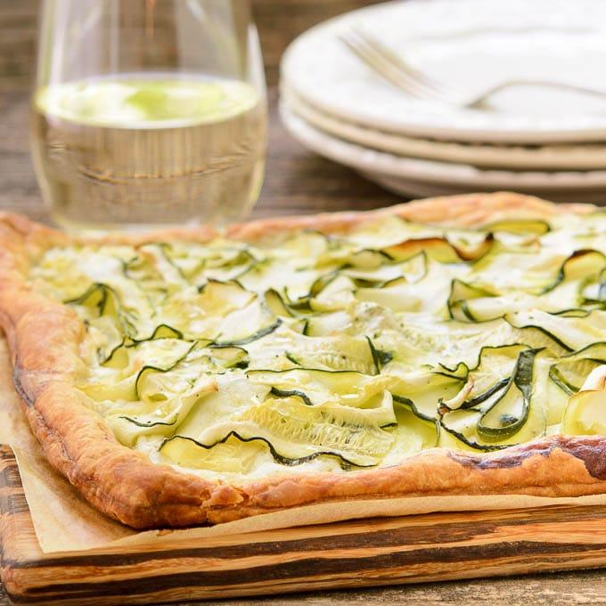 Rociar con aceite vegetal un molde para tarta y colocar la masa estirándola un poco. Precalentar el horno a 200°C (fuerte). Cortar las cebollas y los zapallitos en rodajas. Colocar un poco de aceite en una olla, cuando esté caliente agregar las cebollas cortadas y revolver y dejar que se cocinen por 3 minutos. Salpimentar a gusto. Incorporar los zapallitos y mezclar hasta que el zapallito quede blando. Agregar el queso fresco en cubos, y luego, retirar del fuego. En un bol, romper los huevos y batirlos solo un poco. Condimentar con un poco de sal. Agregar el huevo a la mezcla, unificar y verter en la tartera. Llevar al horno durante 20 minutos.
