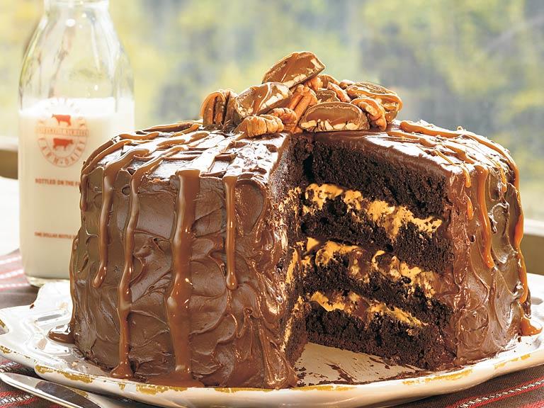 Precalienta el horno a 180º C, forra un molde para pay con papel encerado. Muele las galletas Marías® hasta hacerlas polvo, intégralas con la mantequilla, el azúcar y la canela; mezclando hasta formar un arenado, ponla en el fondo del molde aplanando para formar la base del pay. Hornea 10 minutos y reserva. Vierte el caramelo sobre la base de pay, pon las nueces encima. Funde el chocolate a baño María. Aparte, licua el queso crema, el huevo, el extracto de vainilla y el azúcar; agrega el chocolate fundido y vierte sobre el caramelo. Hornea 40 minutos. Puedes adornar con más caramelo y chocolate fundido.
