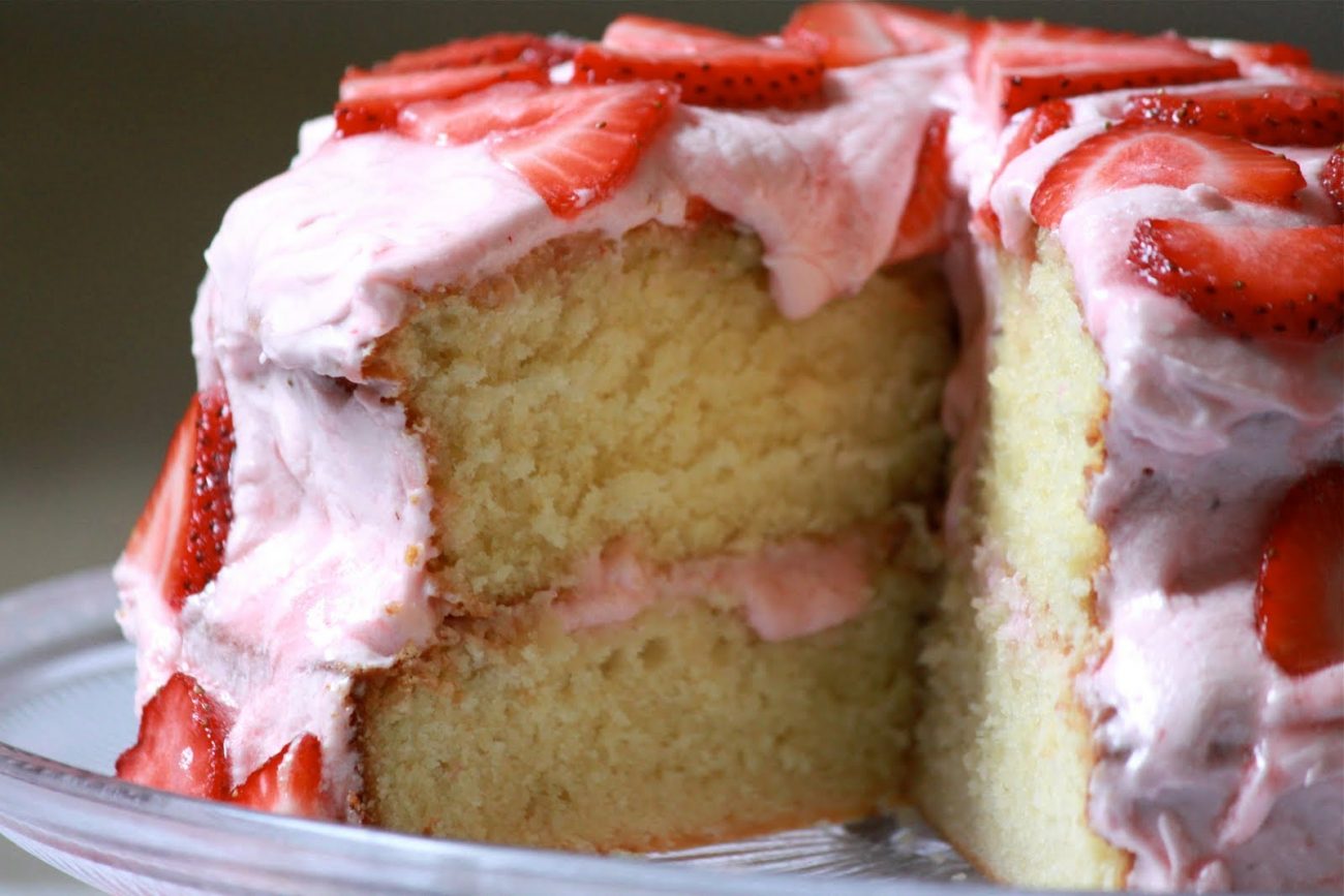 Torta de vainilla y fresas