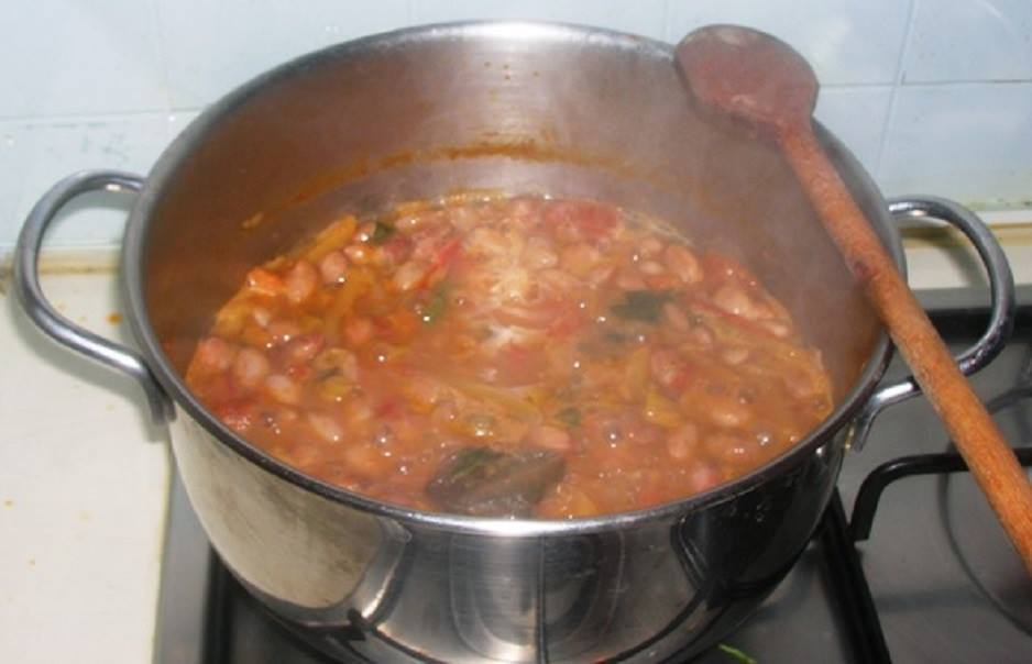 Prendiamo la cipolla la sbucciamo e tagliamo a julienne, la posizioniamo in una padella con dell’olio di oliva e lasciamo rosolare bene, nel frattempo prendiamo un po di pomodori maturi che laviamo e tagliamo a piccoli pezzi che andiamo ad aggiungere alla cipolla in padella dopo rosolata, aggiungiamo anche il peperoncino rosso piccante tagliato a piccoli pezzetti ( se non piace il piccante si puo’ anche fare a meno di aggiungerlo ) lasciamo cuocere un po’ ed aggiungiamo i fagioli, gia’ cotti precedentemente, aggiustiamo di sale e pepe nero, lasciamo cuocere alcuni minuti e servire.