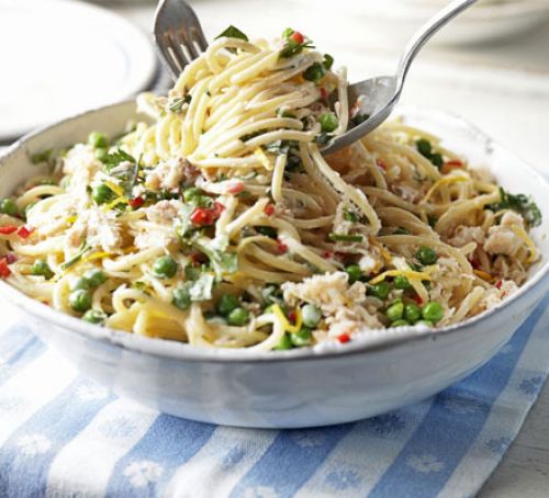 Fettuccine con lattuga e piselli