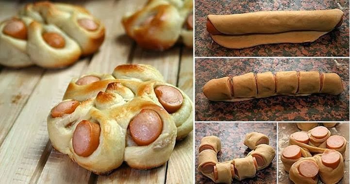 Potete preparare questi fiori sia con la pasta sfoglia oppure utilizzando dell’impasto per pizza e il ripieno può essere a piacere. Avvolgete intorno ad ogni singolo wurstel un rotolo di pasta sfoglia. Effettuate sulle superficie centrale della pasta sfoglia dei piccoli tagli. Allargate ogni singolo taglio d’impasto, facendo attenzione a non rompere la pasta, intrecciate e capovolgete tra di loro le varie parti, concludete adagiando su una placca da forno l’impasto ripieno intrecciato, ricordate di dare la forma di un fiore. Cuocete il fiore in forno a 180° per circa 15 minuti, finché la pasta sfoglia non risulti ben dorata.
