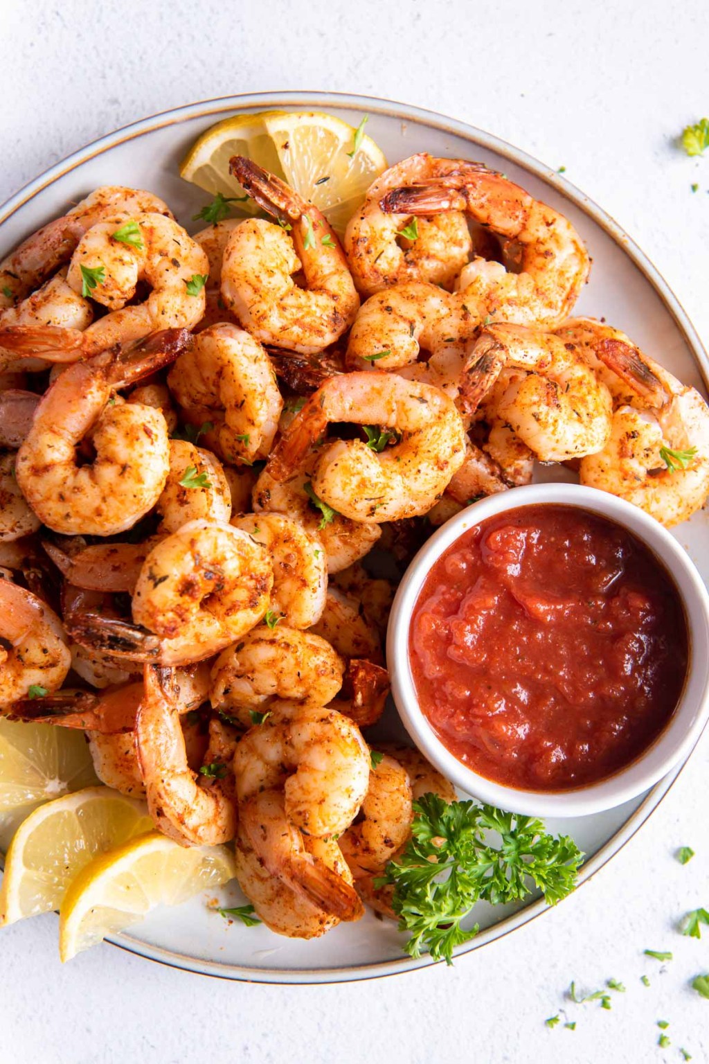 Ho condito questi gamberi con una semplice miscela di spezie, ispirata al mio condimento Cajun preferito. Abbiamo adorato il sapore leggermente piccante e affumicato di questo condimento con i gamberi. Non potevamo smettere di mangiarli direttamente dal cestello della friggitrice ad aria!