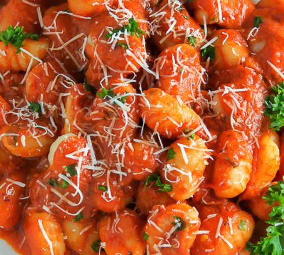 - Metti una pentola grande di acqua salata a ebollizione rapida a fuoco alto. Cuocere gli gnocchi secondo le istruzioni sulla confezione. Scolare gli gnocchi e saltarli nella salsa di vodka. Impiattare, cospargere con altro formaggio e prezzemolo e servire subito.