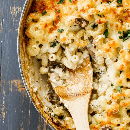 Preriscaldate il forno a 190°C. Lessate la pasta in una casseruola colma di acqua bollente e in ebollizione. A cottura avvenuta, scolatela e mettetela da parte in un contenitore. Fate soffriggere nell’olio evo bollente la cipolla tritata e quando sarà diventata trasparente aggiungete i funghi e la zucchina tritata. Insaporite con un pizzico di sale e uno di pepe. Mescolate e proseguite la cottura finché le verdure si saranno intenerite. Imburrate una teglia rettangolare e formate uno strato con la pasta. Copritela con uno strato di salsa alle verdure e uno del composto ai formaggi. Continuate a disporre strati fino all’esaurimento di tutti gli ingredienti. Prima di infornare la pasta coprite la teglia con la carta di alluminio e fatela cuocere per 20 minuti. A questo punto, proseguite la cottura per gli altri 15 minuti senza la carta di alluminio. A cottura avvenuta, servite la pasta subito in tavola.