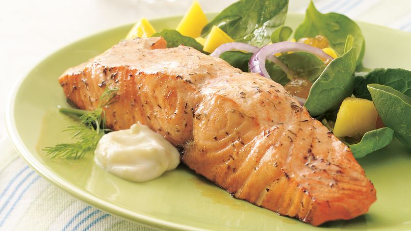 - Coprire un’altra piccola teglia con un foglio di alluminio, spruzzare uno spray da cucina. Mettere i filetti di salmone e aggiungere la salsa al limone. Allo scadere del tempo per le patate, toglietele, mescolatele e rimettetele in forno ma con le verdure e il pesce per 12/15 minuti. Dovresti controllarli circa 8 minuti, poiché tutto può variare. Servire da consumare o raffreddare per refrigerare.