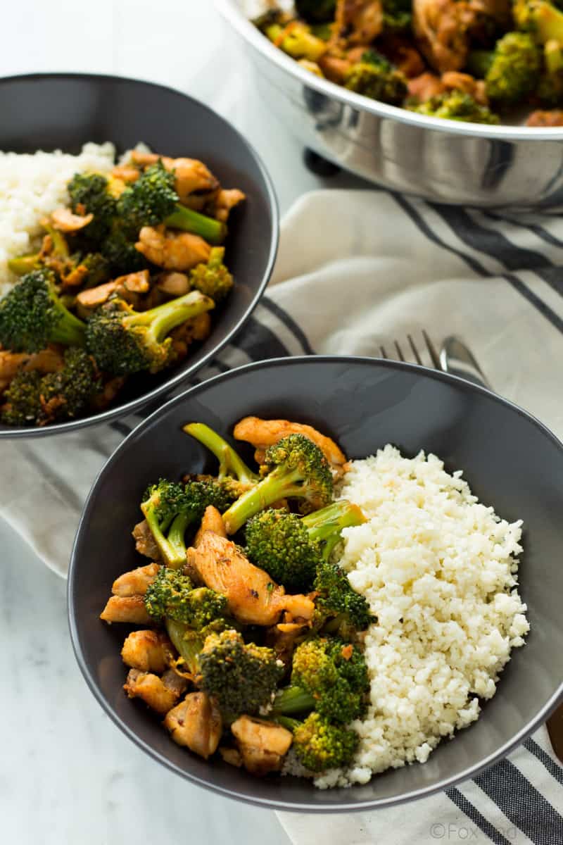 - Scaldare un’altra padella con un coperchio a fuoco medio-alto, aggiungere olio se lo si usa e quando è ben caldo aggiungere il pollo, aggiustare di sale e lasciare cuocere da un lato fino a doratura, poi girare. Quando il pollo sarà cotto, aggiungere i broccoli e coprire. Lasciare riposare dai 5 ai 10 minuti, è possibile mescolare più volte per evitare che il pollo si annerisca troppo. Nel frattempo preparate la salsa sciogliendo il burro con la salsa calda, versando sopra il pollo con le verdure e mescolando. Servire con il riso.